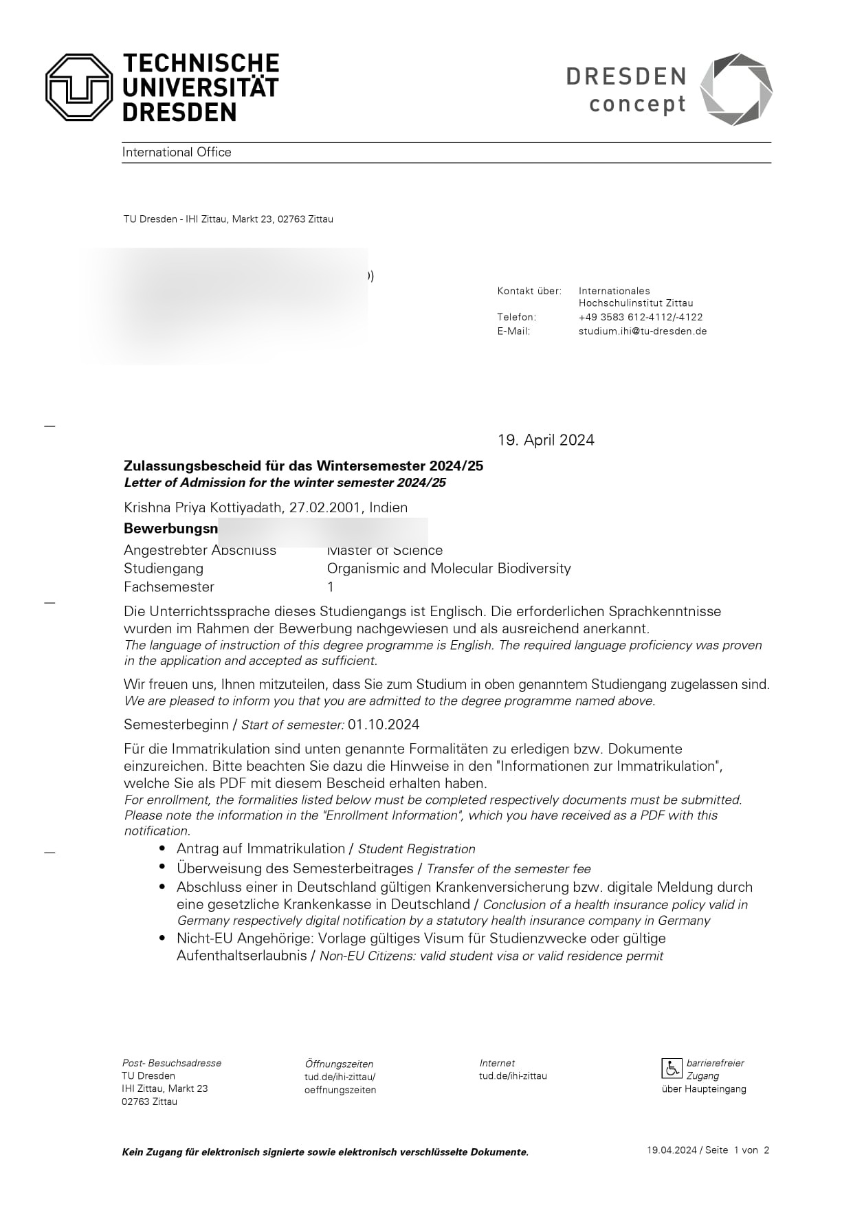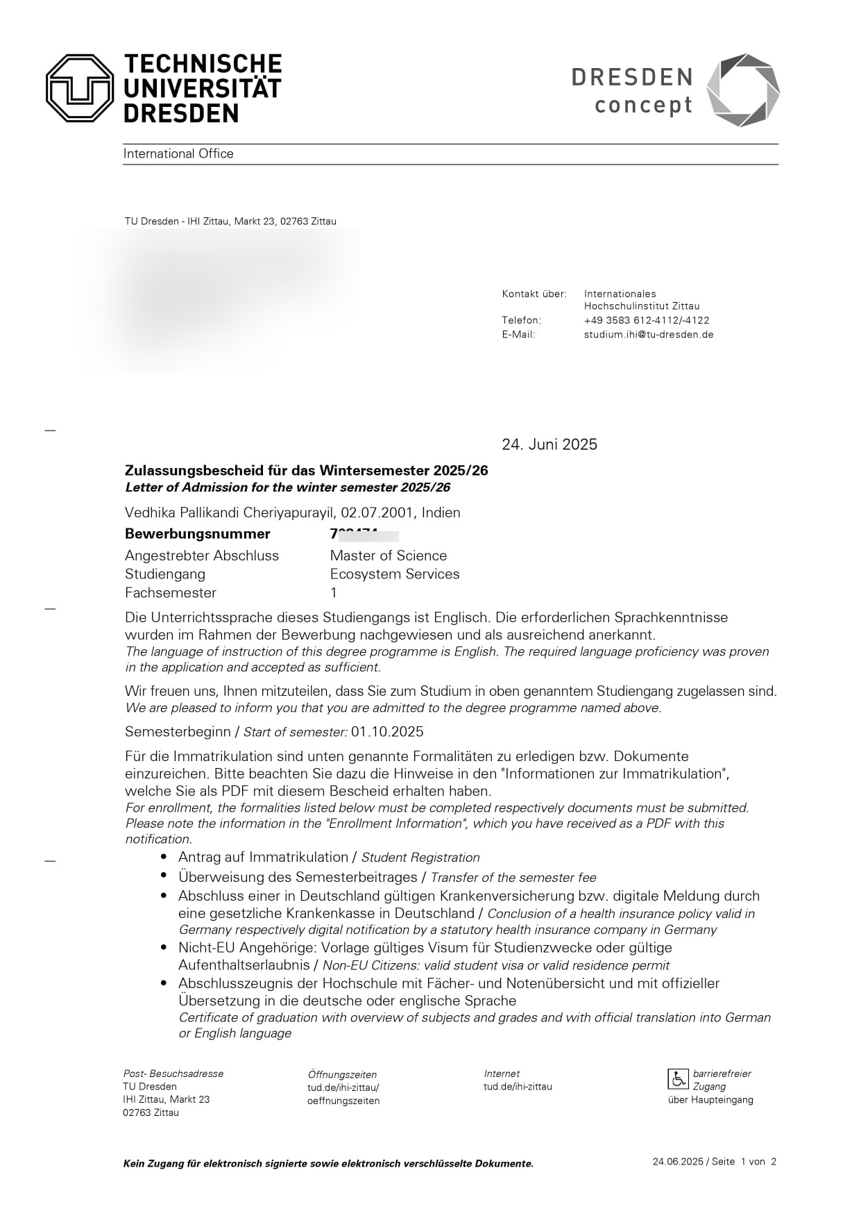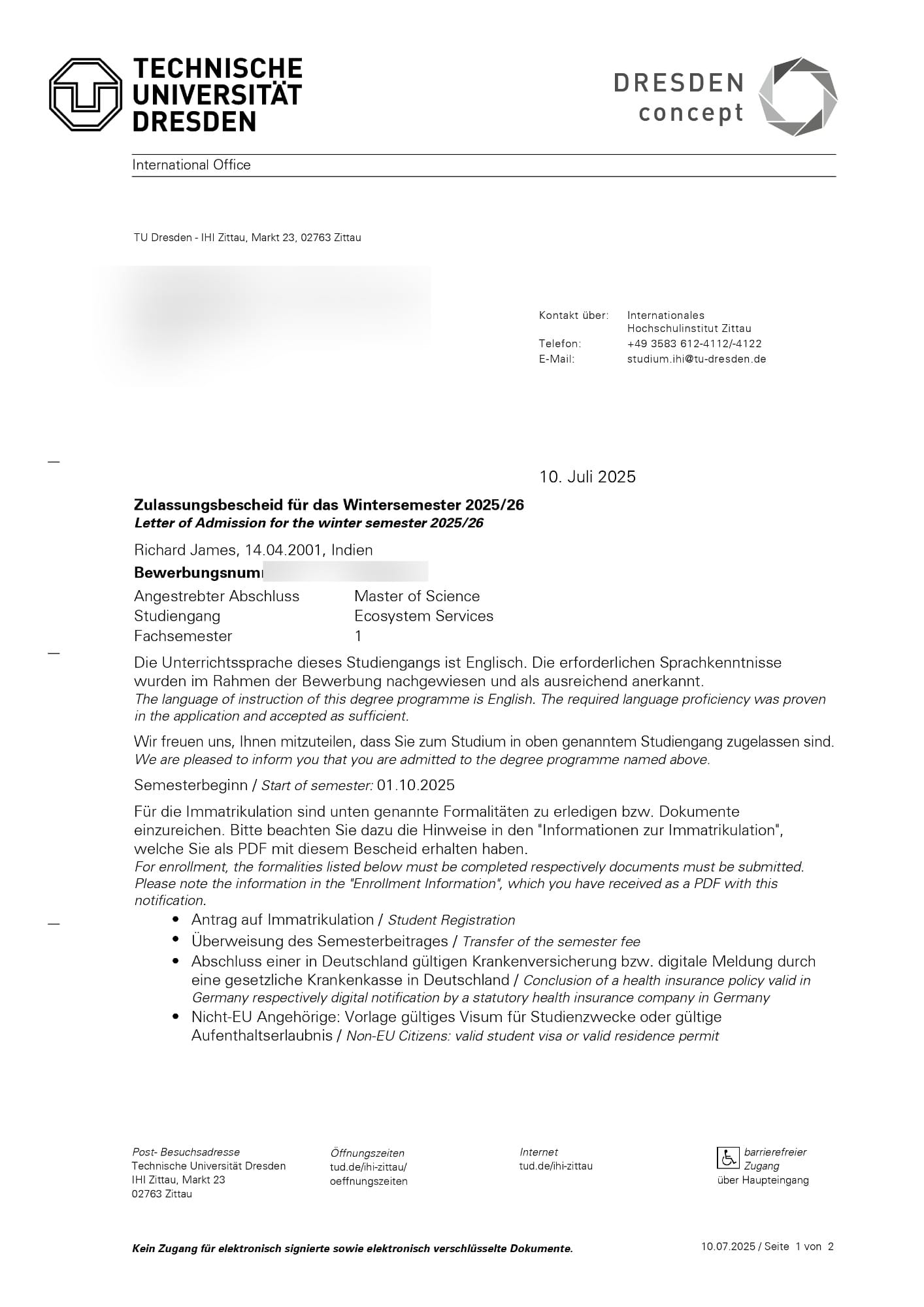 I’m genuinely excited to share my experience with the Restart Team. The speed and efficiency with which they handled my application were impressive and made it possible for me to begin my studies at TU Dresden. From application to accommodation everything were handled by them. Coming from an Agriculture BSc background, I was understandably nervous about the transition, but the Restart Team supported me every step of the way. They patiently answered all my questions, big or small, and consistently. Everything about their service was spot on. Their customer support stands out as truly exceptional, responsive, and always available when needed.