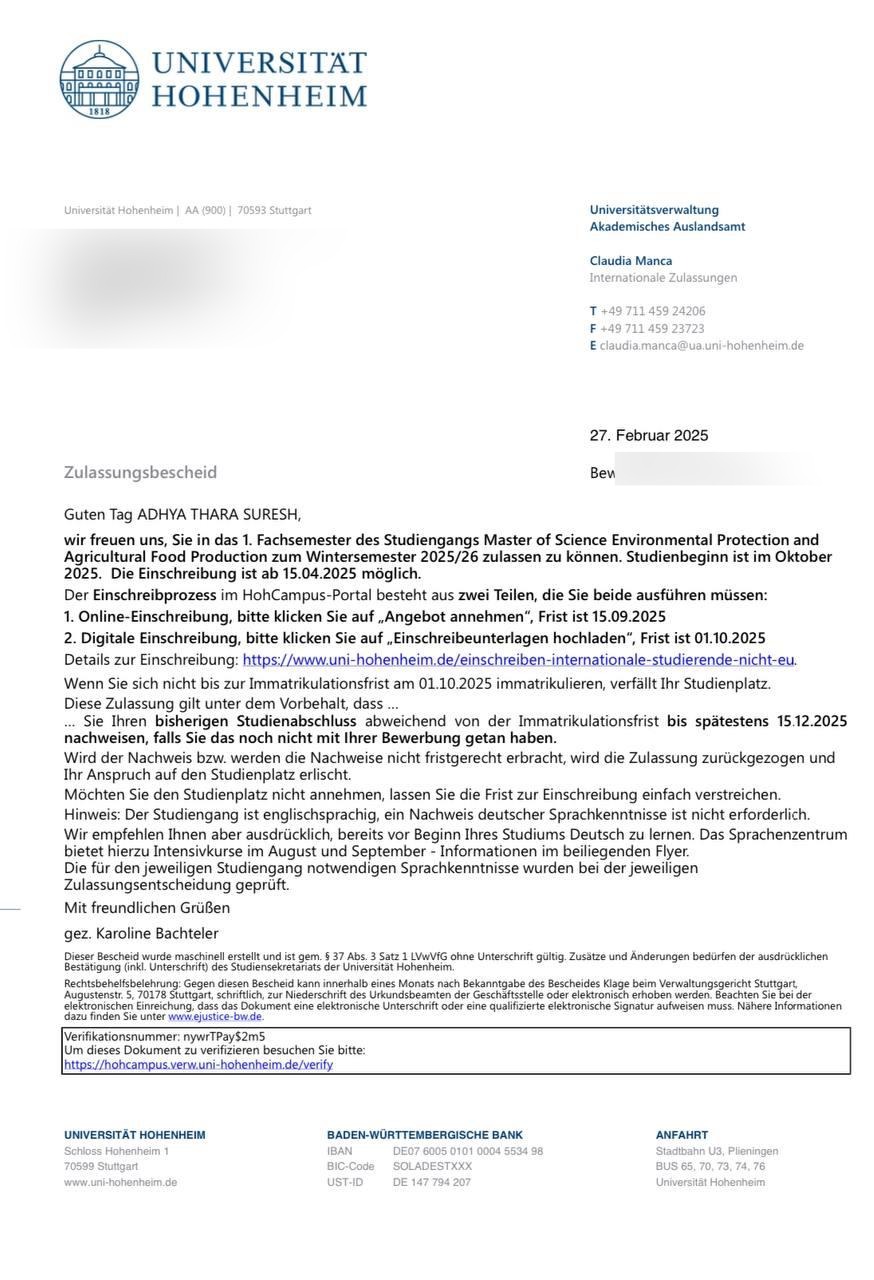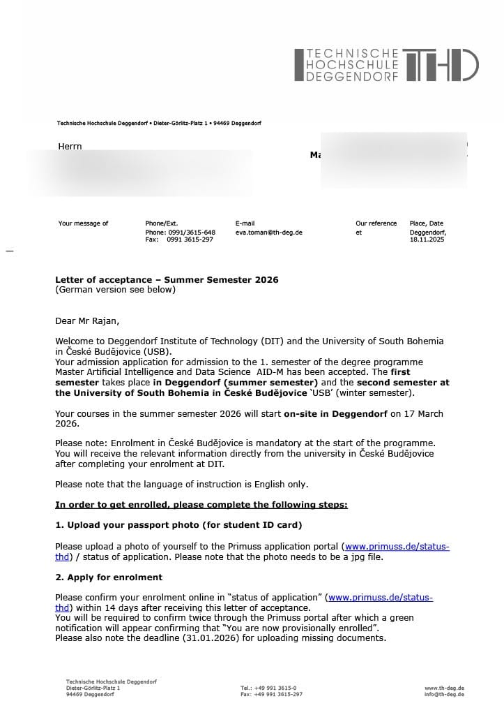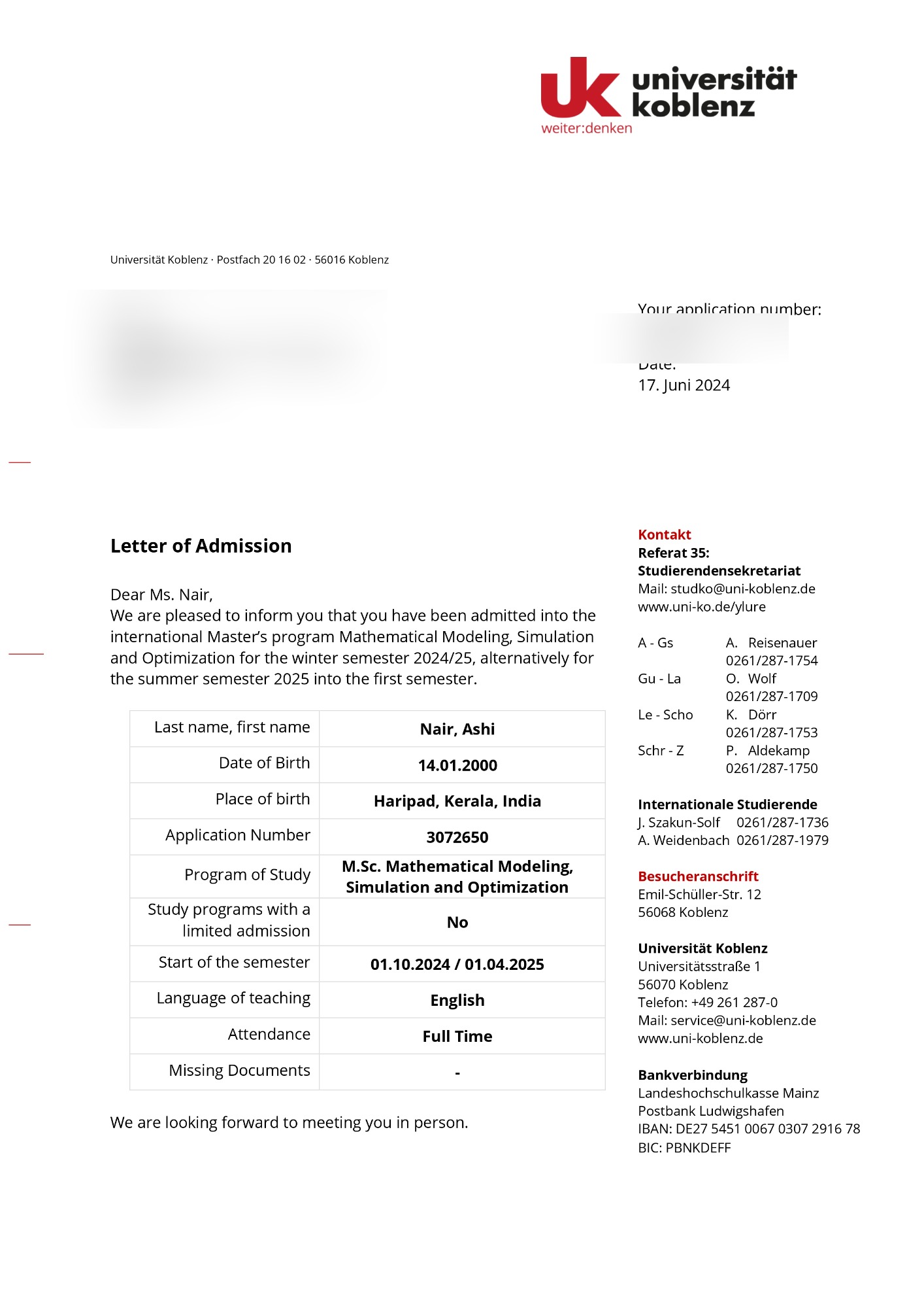 I am happy to share my successful journey from a BCA background to securing admissions at two prestigious German public universities, all thanks to the "Restart" team. Coming from a specialized undergraduate degree, navigating the German application process initially felt hard. They provided me with essential guidance and structure needed to successfully bridge my background with the requirements of top-tier German institutions. Moreover, they were always there over a phone, whenever I needed to clear any small doubts. I would highly recommend Restart.