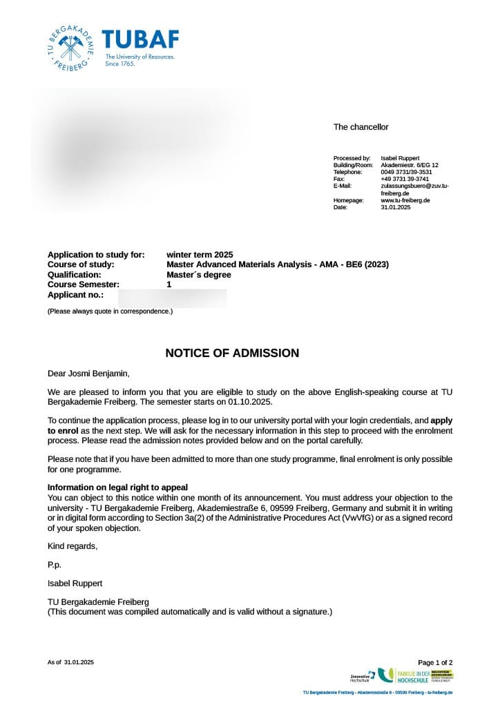 I’m grateful to the Restart Team for helping me secure admission to five public universities in Germany for my master’s studies. Their support was truly end to end. They guided me through every stage, from choosing the right programs to preparing documents and submitting applications. The team was always available, quick to respond, and very clear in their explanations. Their professionalism and dedication made the whole process smooth and stress free. I can confidently recommend Restart Team to anyone aiming for a master’s admission in Germany.